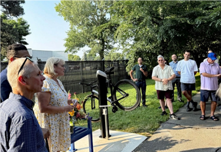 Hello and thank you all for coming. By way of introduction, as many of you know, I am Wendy Sanders. Before I begin this dedication, I would like to acknowledge and thank Peggy and Evie, and Elliot who could not be here, John Embow’s wife and children, for attending. As a recent past president of the Rotary Club of the Buffalo Niagara Medical Campus, we’ve been conceptualizing and working on our portion of the Greenway Trail. The Niagara River Greenway trail is a 36-mile-long corridor extending the length of the Niagara River in Erie and Niagara counties. The Niagara River Greenway Commission has created an ambassador program to support and maintain access to the natural environment and abundant waterfront recreational opportunities.Thank you to Greg Stevens from the Commission for being here this evening. Several Rotary clubs and other organizations have adopted sections of the trail and the Rotary BNMC has been involved for several years, maintaining our section with clean ups annually or more. We’ve been planning on a bike repair station and, more recently, a bench, to enhance the trail. It has been a journey for our club lead by several past presidents including Bob Grinewich, Sean Brennan, myself and now, Amir Johnson. Tragically, John Embow, one of the signatory contractors of Roofers Local 74, died by suicide nearly two years ago. He was also an avid cyclist and known by several of my fellow Rotarians. My relationship with him was as a fellow contractor, a nearby neighbor and a person I admired for his intelligence, with the occasional audacity to confront what I considered my better judgement. He was a hard worker, a great dad and a tremendous asset to our industry and is missed by many.