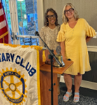 PHOTO (L to R): Outgoing Rotary President Marion Beckerink congratulates Michelle Jones, Rotary’s Service Above Self Award winner.