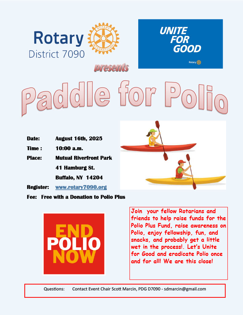 Rotarians and friends are invited to join their fellow Rotarians on the Buffalo River, in their watercraft of choice, for a morning of fellowship, exercise, and paddling, all the while raising monies to help eradicate polio once and for all.