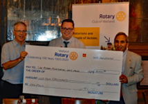 Rotary Club of Welland President Ray Tisi presented Aaron with a cheque made out to Rotary International End Polio Campaign in the amount of USD $2,000.
