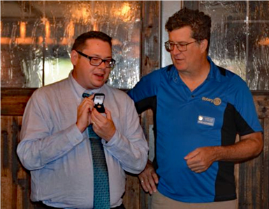 PHOTO (L to R): Major Donor Pin L- R DG Aaron Carlson, Past District Governor David Alexander