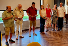 We started out the rotary year with a picnic, celebrating our 75th anniversary! Our hosts were Bob and Lisa Breidenstein. We presented a check to the West Seneca Food Pantry and we had a special guest - Phebian Abdulai of Jericho Road. Phebian was visiting the area from Sierra Leone, where the West Seneca Rotary club purchased a generator during the previous year. Jericho has a health clinic in Sierra Leone.