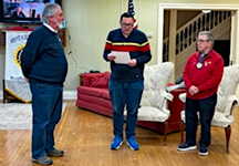 At its first meeting for January, Area 16 AG, Marion Beckerink introduced District 7090 Governor Aaron Carlson during his visit with the Westfield-Mayville Club.