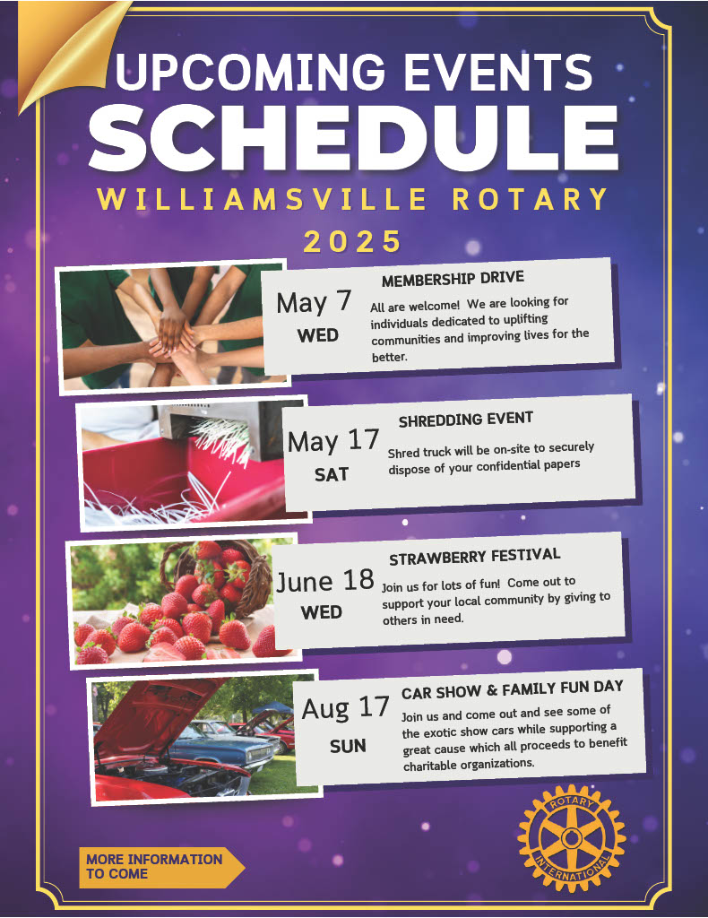 The Rotary Club of Lockport will be hosting our annual Cash Raffle on Friday April 25th, 2025, from 6:00 PM - 9:00 PM at the Cornell Cooperative Extension 4H Building, 4487 Lake Ave, Lockport, NY 14094.
