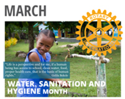 Our blue planet. 70% covered in oceans. Almost everything we build or grow has to manage or use water somehow. Life is not possible without water - and Rotary supports local solutions to bring clean water to more people. March celebrates Rotary’s efforts around Water, Sanitation, and Hygiene. And as with all of our areas of focus there is an associated Rotary Action Group: WASHRAG - supported by those especially keen Rotarians who are helping people in the developing world improve life and livelihood through the provision of safe water and sanitation. An interesting tidbit is that WASHRAG’s founding chair is Ron Denham who started his Rotary career in our District in 1957 - my club actually. His stay in 7090 (it was 709 back then) was all too brief and he has been a long-standing member of the Toronto-Eglinton club. I have had a chance over the past few years to meet up with him several times - an exceptional Rotarian. I would invite you to join WASHRAG - or any one of the other Rotary Action Groups to deepen your membership experience and meet new friends from around the world.