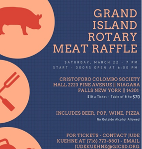 We are excited to announce the annual Rotary Meat Raffle will be held on Saturday, March 22 at the Cristoforo Colombo Society Hall on 2223 Pine Avenue - Niagara Falls New York 14301