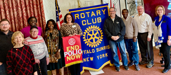 PDG Lisa Bishop (RC Norfolk Sunrise), with her partner Lionel Ulrich, visited Buffalo Sunrise and shared a PowerPoint highlighting her trip to India to assist with polio eradication.