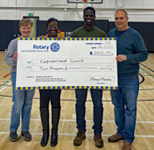 PHOTO: Rotarians Sarah Brunt with President Mike Dunne presented Ann-Marie Anie and Leo Nupolu Johnson a $2000 cheque to assist them in the funding of their educational endeavors.
