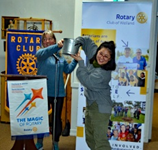 Special guest Larry Koon (RC Kenmore) added that his club, for many years has involved elementary school children in learning about and helping children around the world to be immunized through RC Kenmore’s Purple Pinkie initiative. School children learn about polio through video presentations and then donate $1 to have their pinkie painted purple in solidarity with children across the world and the receive a “Lifesaver” candy for also helping to stamp out polio world-wide.
