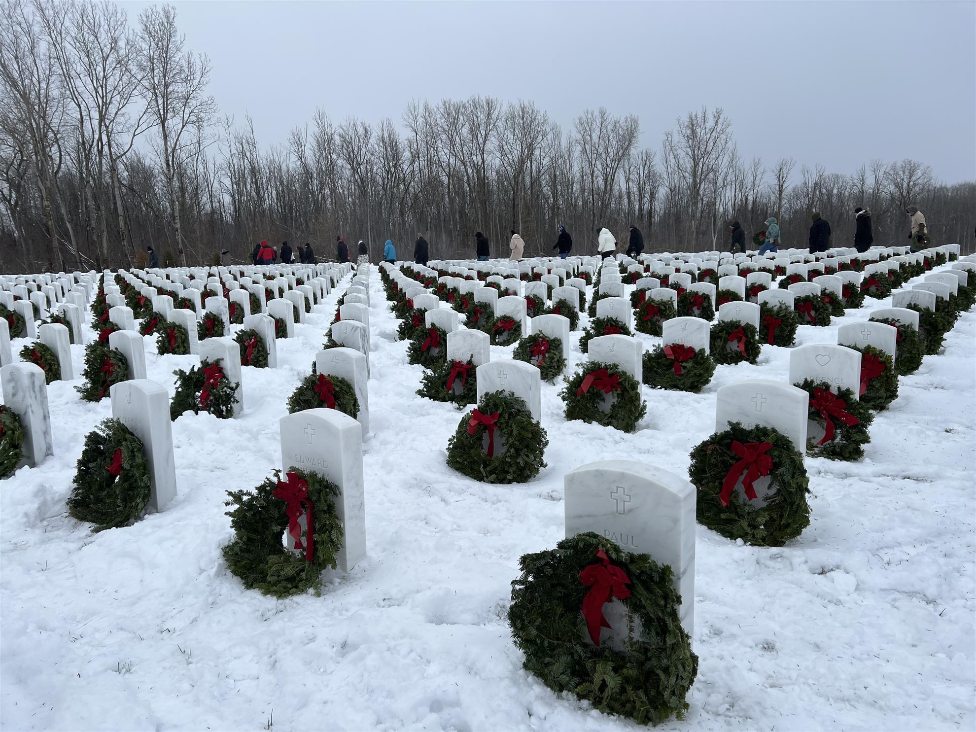 Though winter weather blanketed the cemetery in snow, it did little to dampen spirits. Smiles, quiet conversations, and moments of reflection underscored the meaning of the day. The sight of evergreen wreaths resting against white headstones served as a powerful reminder that remembrance endures in every season.