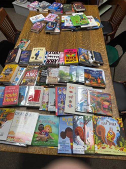 If that wasn’t enough, that all was matched by Pat (Trustee) & Dan Thompson with an additional $1000!!! Pictured (RIGHT) are many of the books that are available to local readers and eventually for readers throughout the region!