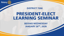 The mission of District 7090 is to inspire and support our clubs to be the best they can be. One of the ways we support club leaders like you is by facilitating a comprehensive President Elect Learning Seminar (PELS).