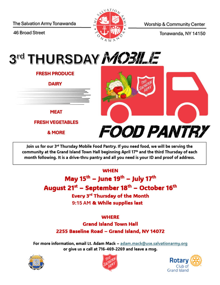 WHERE: Town Hall, 2255 Baseline Road, Grand Island, NY 14072