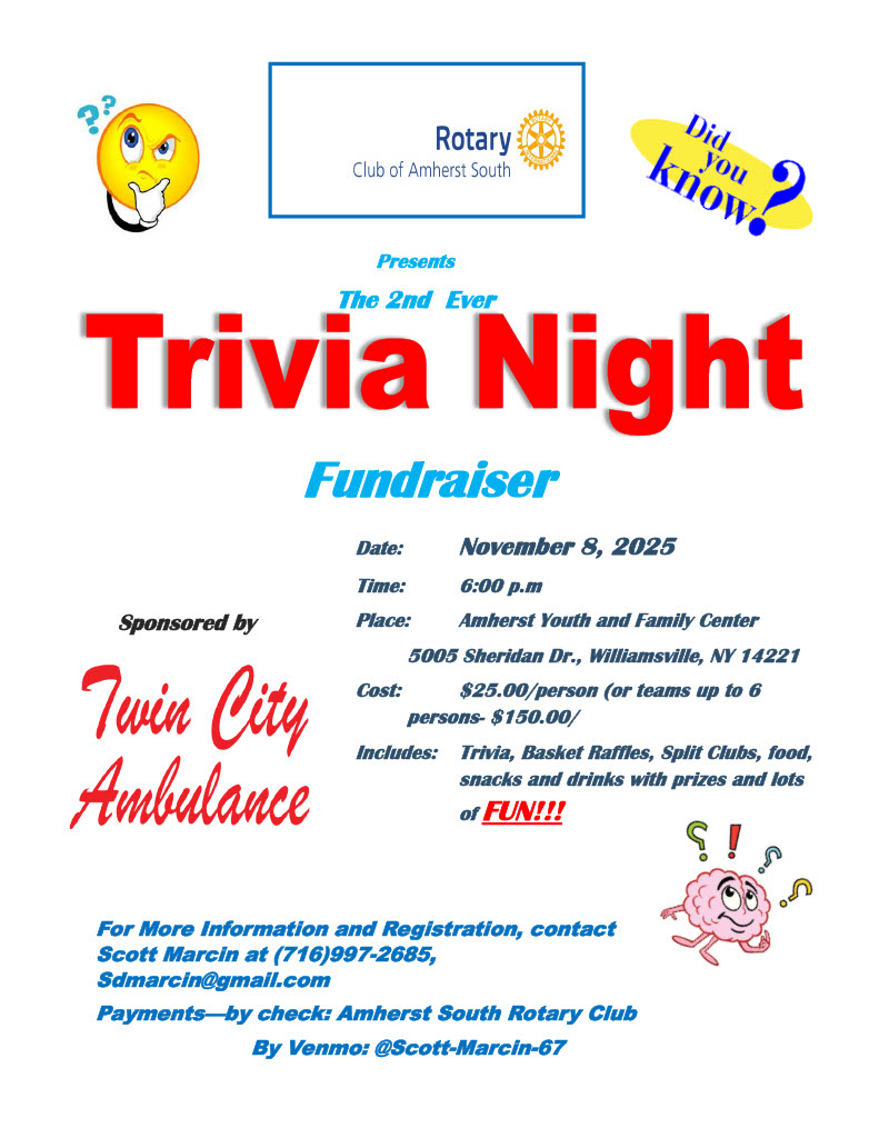 Lincoln Community Centre, 4361 Central Avenue, Beamsville, ON L3J 0N9 If you haven’t already, please commit to attending the D7090 Foundation Celebration and Recognition event on Saturday, November 15th in Lincoln, Ontario. Details are available on the District home page by clicking HERE.
