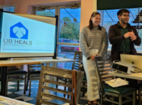 The Rotary Club of Hamburg hosted speakers from "UB Heals" at its Oct.21 meeting and supported the initiative with a donation of four large bags of heavy winter socks and one bag packed with toothbrushes to aid the vulnerable population of unhoused Western New Yorkers the organization serves. Maya Zalewski, program manager and David Cazares, assistant program manager provided information about UB Heals, a street medicine outreach initiative of the Jacobs School of Medicine and Biomedical Sciences of the University at Buffalo. Zalewski and Cazares are medical students who also actively participate with other members of the team in weekly rounds at shelters and outdoors locations to provide medical attention to men, women and children. They also distribute clothing and hygiene supplies while treating patients. The organization accepts donations from the public such as T-shirts, socks, sweatshirts, jeans, underwear, hats, gloves and seasonal jackets. To learn more about UB Heals, visit https://www.ubheals.org. Zalewski and Cazares are pictured above at Uncle Joe’s Diner in Hamburg where the Rotary Club meets on the first and third Tuesdays of the month.