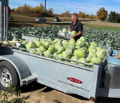 Randy Abel from the Dundas Lions Club loads some of the over 800 cabbages that members cut.