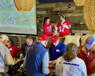 The party takes place at Ellicottville Brewing on Chautauqua during a Buffalo Bills away game.
