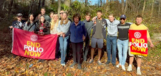 In District 7090, we celebrated World Polio Day with flag raisings, blue, yellow and purple illuminations, Pints for Polio, and a hike with Youth Exchange students.